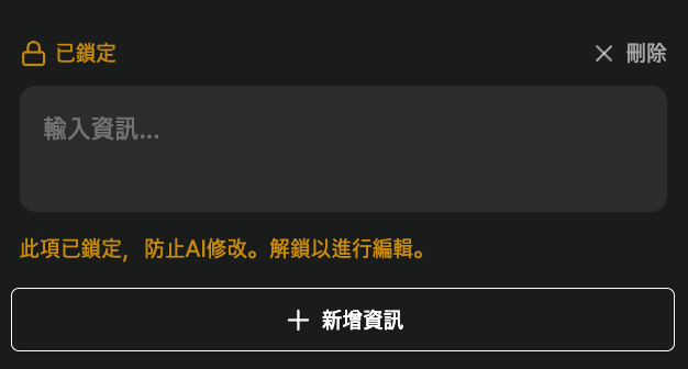 若希望玩家新增的內容能被固定後不會被修改的話,可以固定該內容。固定功能僅適用於「長期敘事」與「資訊」。